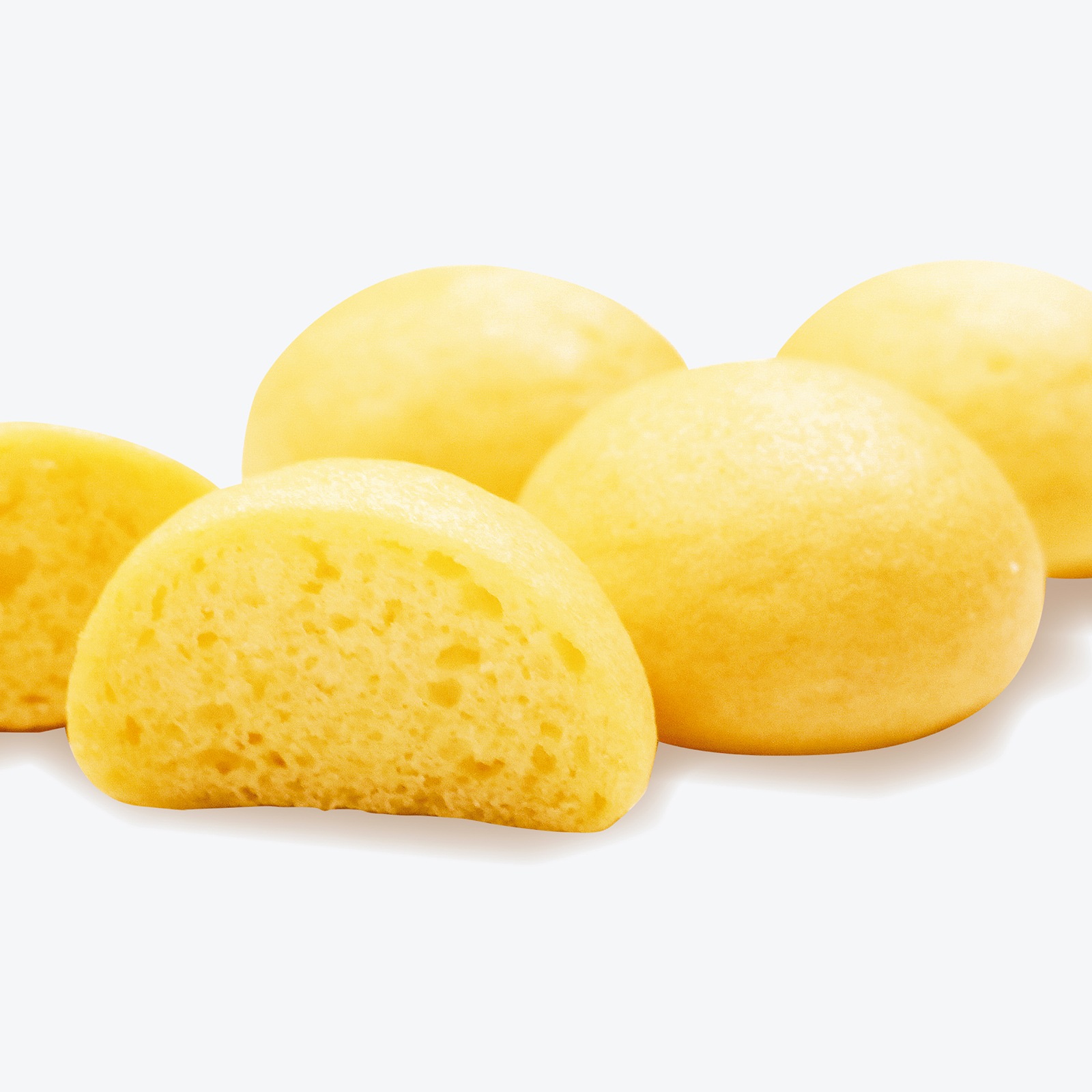 【プレーン】エネルギー:64.0kcal、たんぱく質:1.1g、脂質:2.7g、炭水化物:8.8g、 食塩相当量:0.14g 《原材料名》全卵(国産)、小麦粉、砂糖、マーガリン、植物油脂、澱粉、脱脂粉乳、ぶどう糖、食塩/加工澱粉、ベーキングパウダー、糊料(アルギン酸エステル、増粘多糖類)、(一部に卵・小麦・乳成分・大豆を含む)